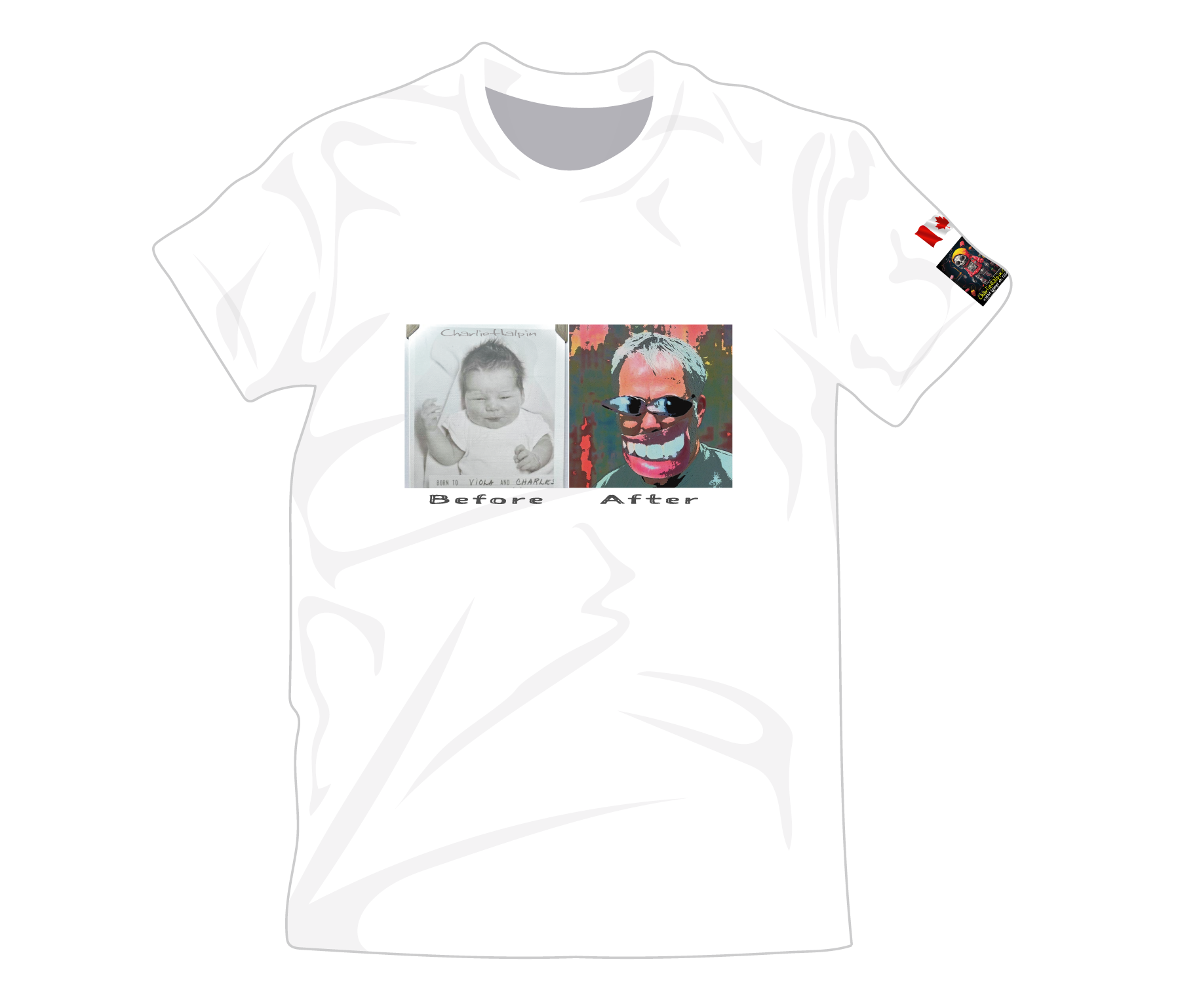 Transform from newborn to crazy creator with one smooth brushstroke. Just Born is a rare, unnumbered 100% cotton Gildan 5000 in white. Includes printed sleeves and flag design. Shipping costs revealed at checkout. Enjoy free shipping when you order 2 or more shirts!