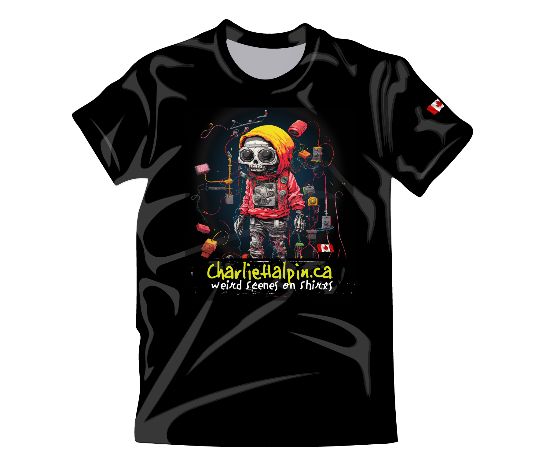 Yes its sicko art but cool too. Get ready to stand out with My Brand Shirt #100 Weird Scenes by Charlie Halpin! This limited edition shirt features sicko art that's sure to turn heads. Made from 100% cotton and printed on a Gildan series 5000, this shirt is both comfortable and cool. Plus, with the Canadian flag on the sleeve, you can show off your love for Canada. Don't wait, grab yours today and get free shipping on 2 or more shirts!