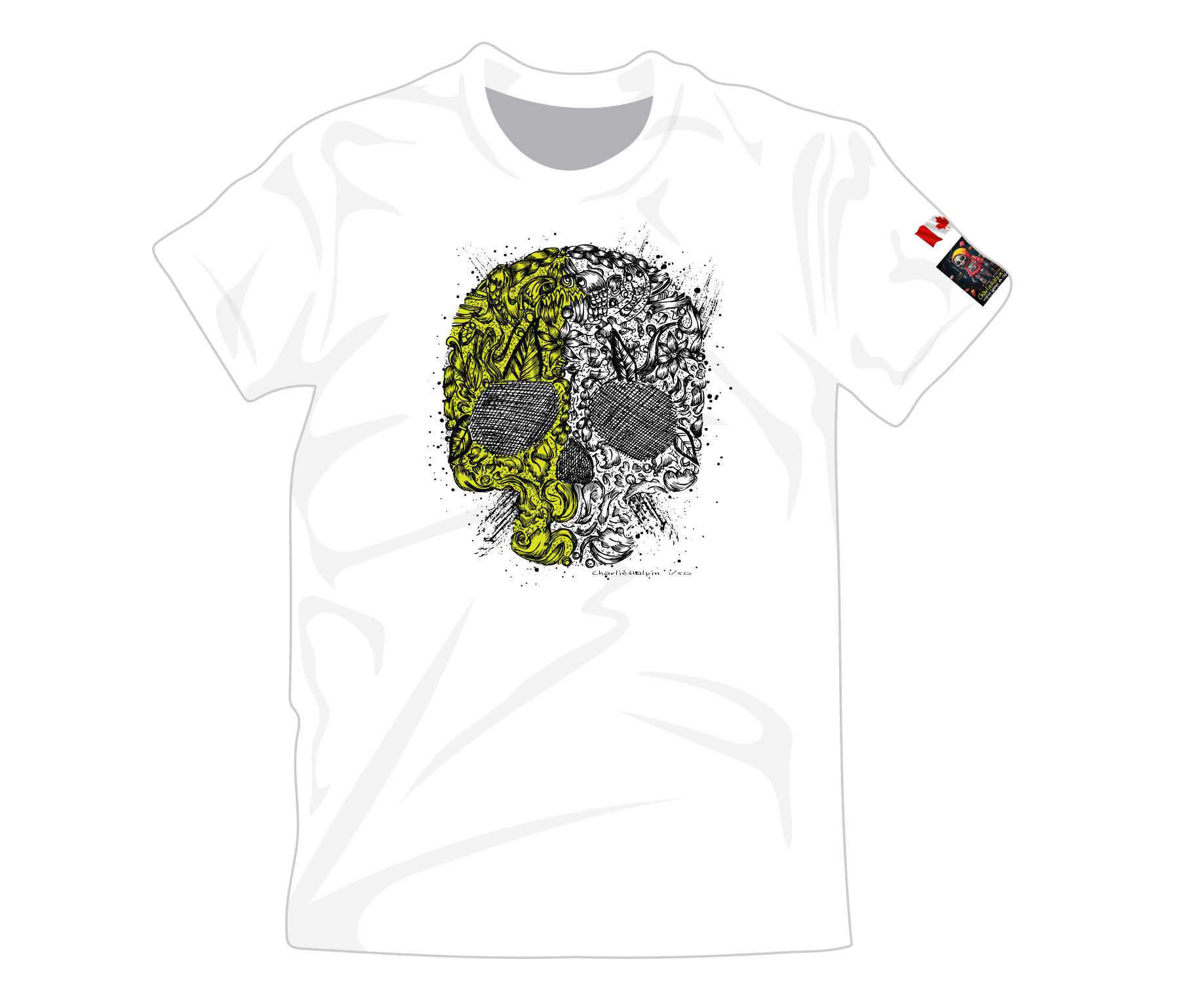 Both sleek and stylish, Skull #121 by the renowned artist Charlie Halpin, now available on a durable 100% cotton T-shirt. Add to cart now and get your shipping calculated at checkout. Plus, save on shipping when you order 2 or more!